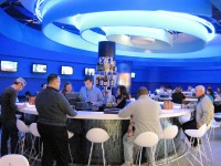 Riddles. We tackled some riddles: Why do guys with deep pockets take on risky ventures instead of selling them off to someone with nothing to lose? Why, when a plane headed for Atlanta is diverted to Greenville, does everyone else choose to stand for an hour at the ticket counter while I (and only I) saunter over to the Hertz counter and grab one of many available cars? And why does Jet Blue, after investing $800 million in its new terminal at JFK, choose to make that terminal so hellish a place that I for one will never travel through it again if I can possibly avoid it?
